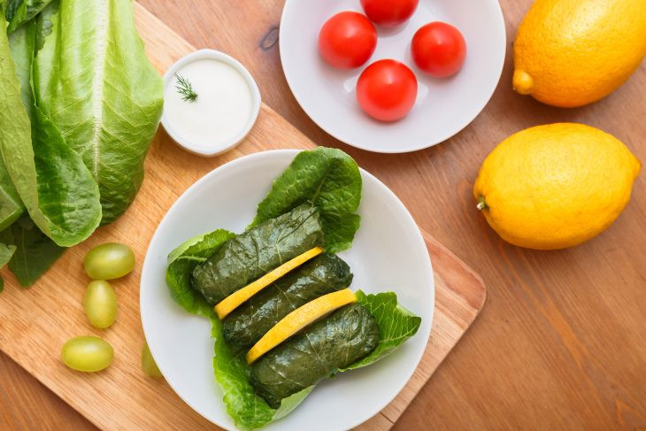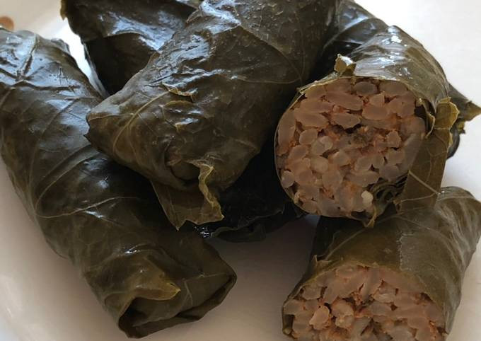 Свежие виноградные листья необходимо тщательно промыть под проточной водой и ошпарить кипятком (так листья будут лучше сворачиваться). Листья нужно оставить в воде примерно на полтора часа, чтобы избавить их от излишков соли. Стебли с листьев нужно удалить.